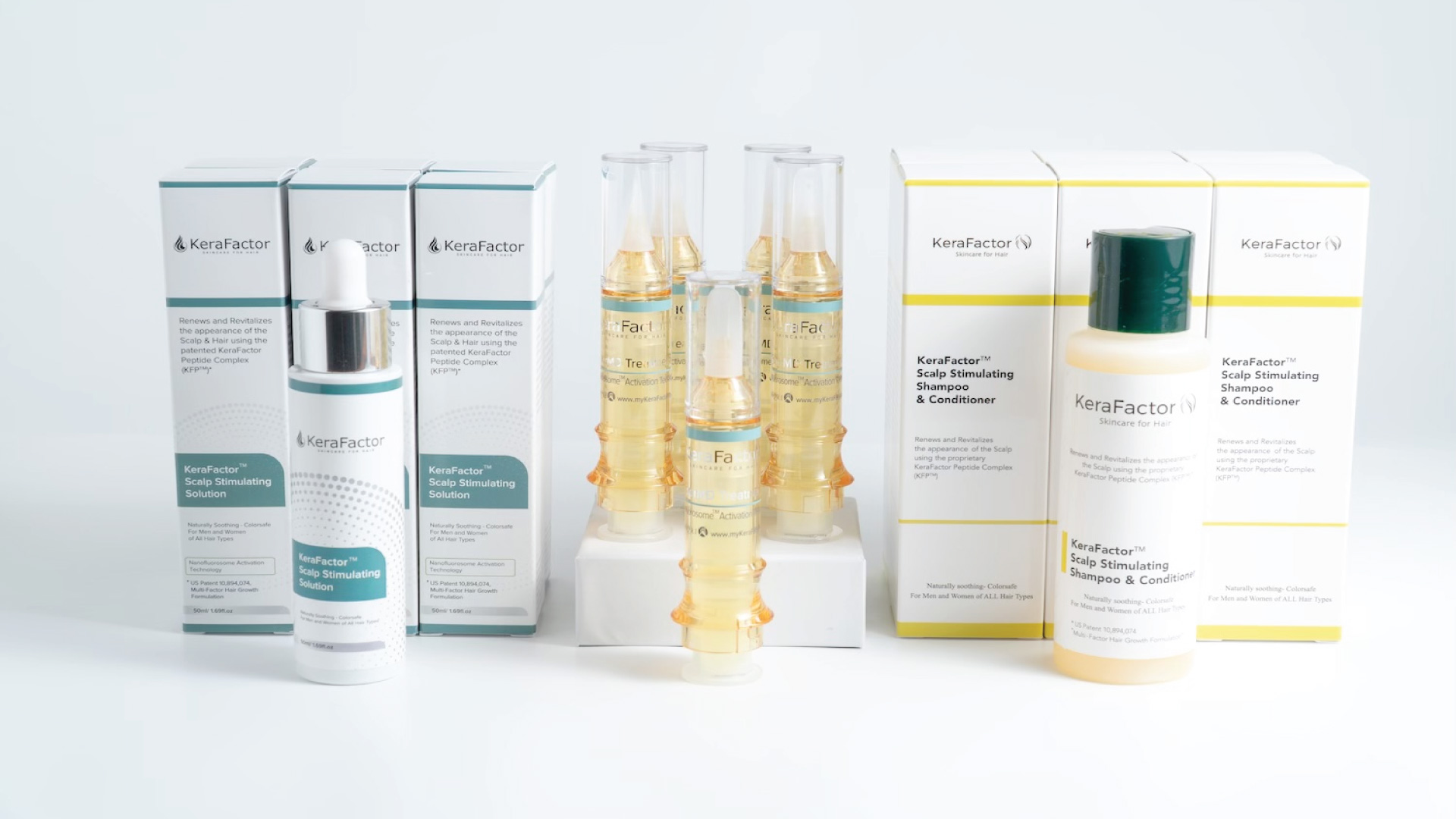 In just few short minutes, the advanced LaseMD Ultra laser painlessly creates tiny microchannels in the areas of the scalp where hair thinning is occurring. This step prepares the scalp, creating the optimal environment for maximum absorption of the KeraFactor® growth factor Serum that is applied topically. KeraFactor contains a high concentration of five growth factors and two types of proteins packaged in nanoliposomes designed to maximize delivery and absorption for the best results. With each treatment, the scalp and hair follicles are nourished, progressively increasing hair growth over the course of 3-6 months.